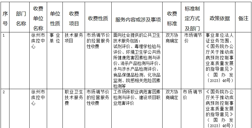 徐州市疾病预防控制中心综合性涉企收费和对外服务目录清单-非凡娱乐app