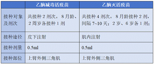 注:乙型脑炎减毒活疫苗、乙脑灭活疫苗都可作为国家免疫规划疫苗。目前,江苏省确定乙脑减毒活疫苗为免疫规划疫苗(免费接种),乙脑灭活疫苗作为非免疫规划疫苗(自费接种)。如果迁居到乙脑流行区,或在流行区高发季节需长时间户外活动的人群,推荐及时接种乙脑疫苗。