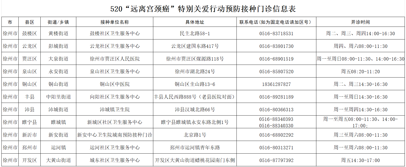 徐州市各级疾病预防控制中心、预防接种门诊积极响应,迅速行动,2025年7月14日(下周一)开始下列预防接种门诊将为报名成功的女职工免费接种国产双价hpv疫苗。