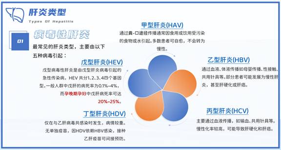 病毒性肝炎,是最常见的肝炎类型,危害非常大。可分为以下五种: