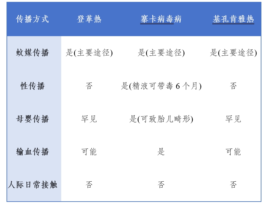 这三种疾病是当前全球范围内由伊蚊传播的三种重要传染病,主要传播方式就是这种“花蚊子”叮咬了携带病毒的人/动物后,再叮咬健康人,从而将病毒传染给后者。随着气候变化和全球化进程,这些疾病的传播范围正在不断扩大,快来跟小编一起了解下三种疾病的异同点吧。