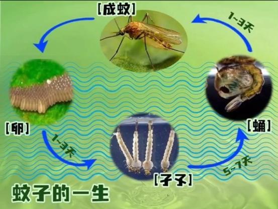 蚊子的一生有四个发育阶段,卵,幼虫,蛹,成虫。前三个阶段都需要在水中完成。清理掉积水就是能把蚊子扼杀在摇篮里。蚊子的卵泡在水中孵化出的