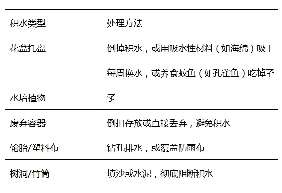 -发现长期积水(如工地、废弃水池),可向物业或疾控部门报告。