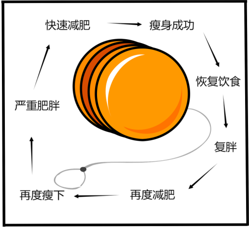 “溜溜球效应”(yo-yo effect)是指体重像溜溜球一样上下波动的现象。减肥者在短时间内通过极端节食或过度运动等方法快速减重后,一旦恢复正常饮食或停止运动,体重往往会迅速反弹,甚至超过减肥前的水平。