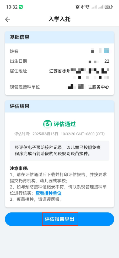 当评估通过下载并打印评估报告,并按要求提交托管机构、幼儿园或学校。如发现评估不通过,查验报告中在“备注”栏看到有显示“未种”表示该疫苗需补种,请及时带儿童至居住地儿童预防接种门诊进行疫苗补种。补种时只需补种未完成的剂次,无需重新开始全程接种。
