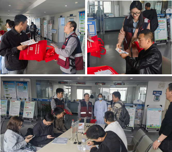 保健中心服务大厅活动现场,通过多形式宣传提升防控意识。活动现场悬挂横幅,摆放展板宣传疟疾传播途径及预防措施、高疟区出(入)境防护指南等防治要点。工作人员向体检人员发放宣传折页、手提袋等资料300余份。