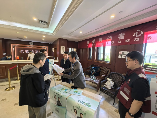 活动首站走进徐州仁慈医院职业健康体检中心,与机构人员和体检人员进行面对面交流,围绕《职业病防治法》核心条款、新版《职业病分类和目录》进行解读,强调依法依规开展职业健康检查的重要性,同时向体检的劳动者科普职业病防治相关知识。推动体检机构成为职业健康服务的“前沿哨所”,为劳动者提供更精准、更高效的健康保障。