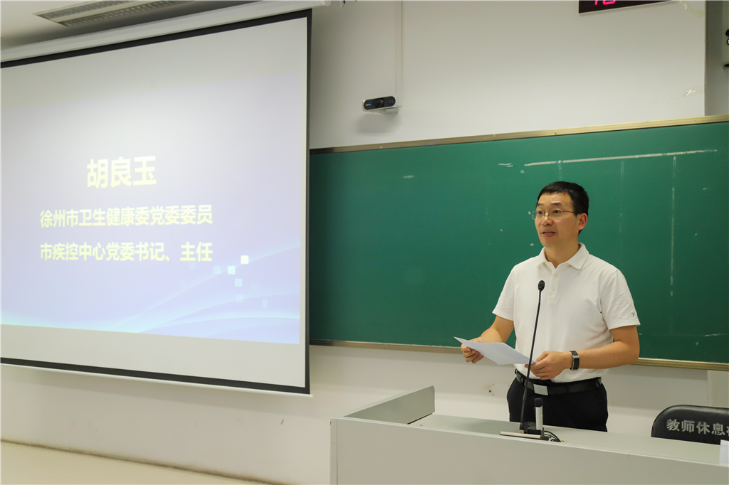 市卫健委党委委员、市疾控中心主任胡良玉,徐州医科大学公共卫生学院党委书记胡斌,市卫健委健康促进处处长、工会副主席丁逸卿,市卫健委疾控处处长曹配亮、副处长衡艳,市疾控中心党委委员、副主任毕俊出席活动。