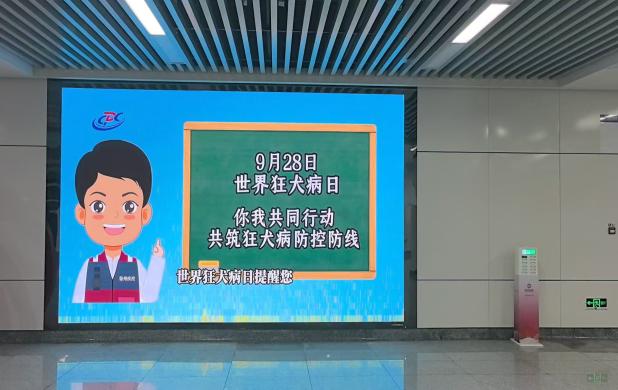 为扩大宣传覆盖面,形成立体化宣传矩阵,徐州市疾控中心创新采用“线下宣讲 公共场景渗透”的联动模式。自9月24日起,精心制作的狂犬病防控公益宣传视频已在徐州地铁上线。地铁宣传分为两种形式,一种为pis屏,在1号线、2号线、3号线地铁全线播出一周时间;另一种为led视频,在彭城广场站、徐州东站、徐州火车站、乔家湖站等人流量大的站点同步播出两周。利用市民通勤时间,将核心知识融入流动的公共空间,实现狂犬病核心知识“抬头即见、触手可及”。
