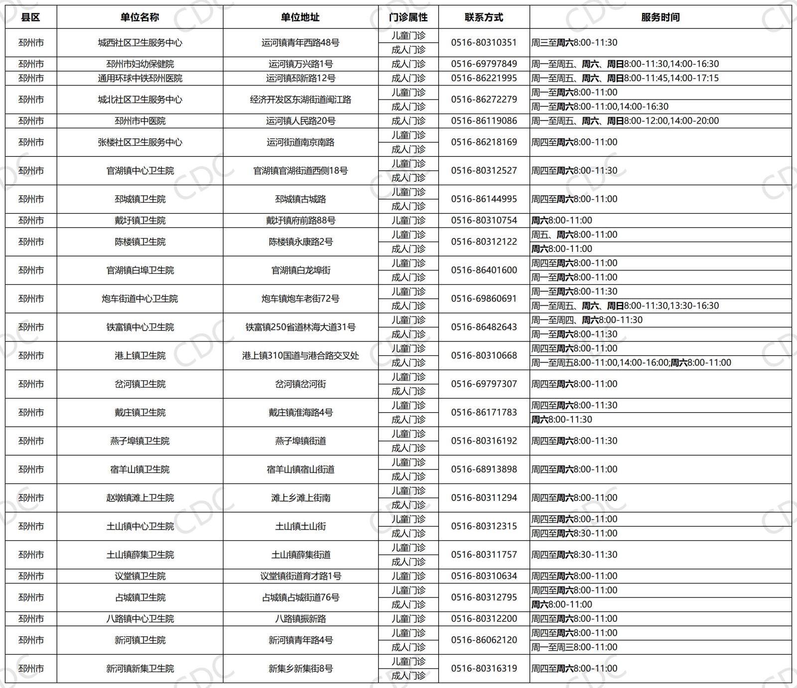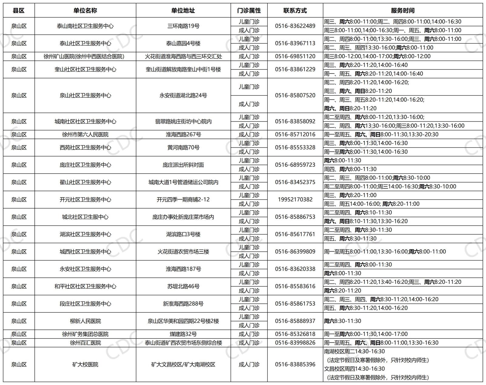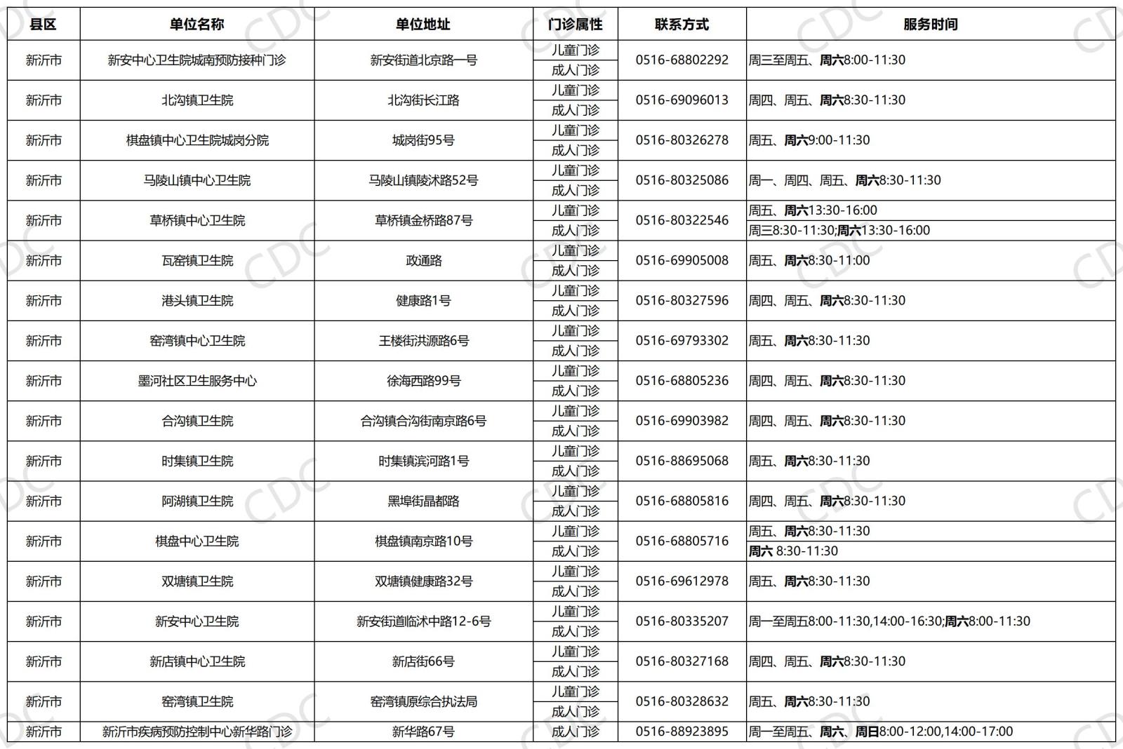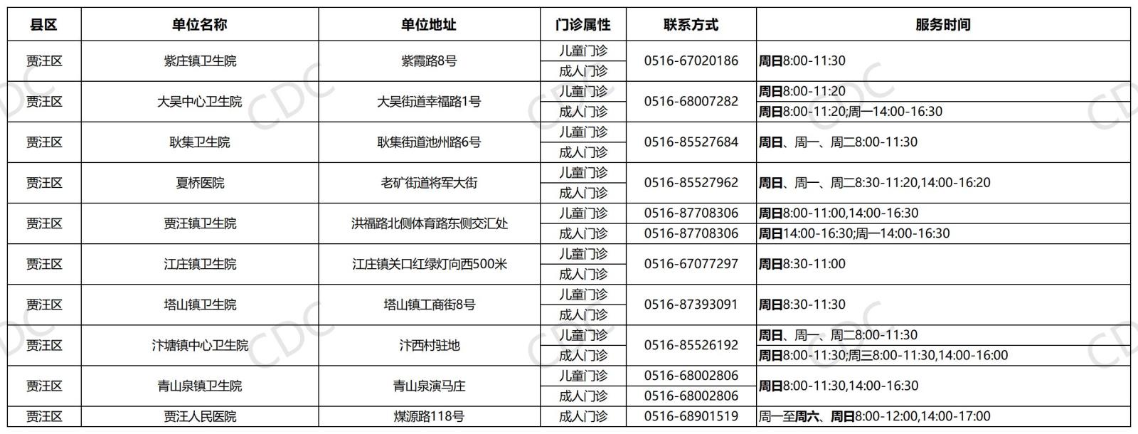 我们已汇总全市参与本次活动的接种门诊信息,具体门诊名称、地址、联系电话、服务时间及供应疫苗品牌详见下图。